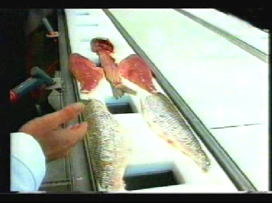 Each fish, from which one can cut a filet, should at the beginning of the production process go into the filet cutting plant. Each plant is able the bulk of all fish types to cut filets and the capacity is with a maximum run of 30 tons per day. In the following the filets become shock-frozen (freshly), smoked and packed. The capacity of the freezer and smoking furnace can be adapted to the conditions alternatively.