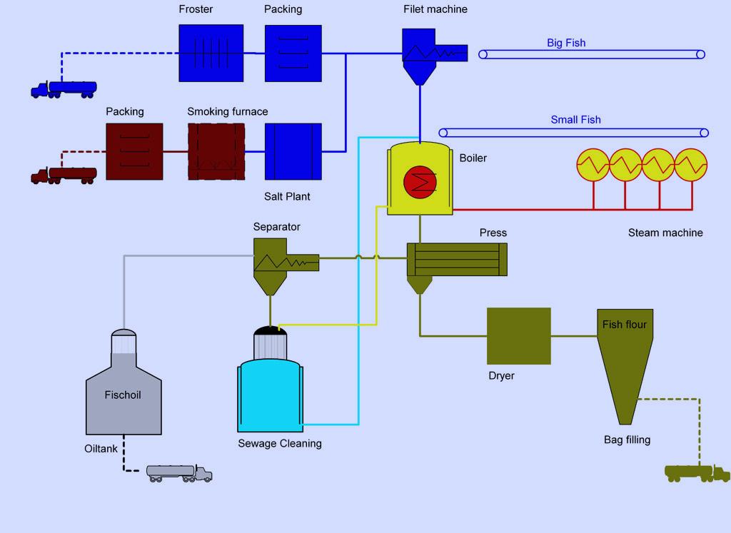 The fish has the central meaning in very many countries. Many countries use however often only a part of the existing resources. There are many enterprises using only a part of some fish types and have to dispose the remainder. Or they automated only the production department fully, in which they wanted to specialize. The future lies in fish factories, which consist of several fully automated production plants and are able to use the bulk of all fish types completely.
