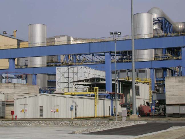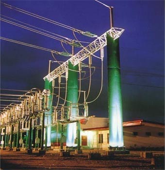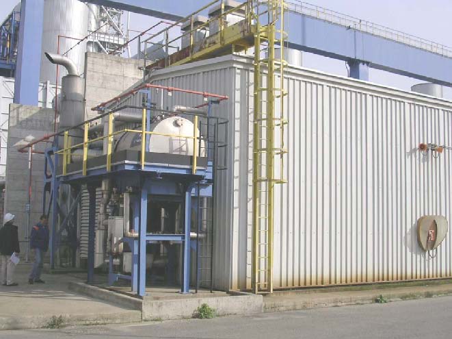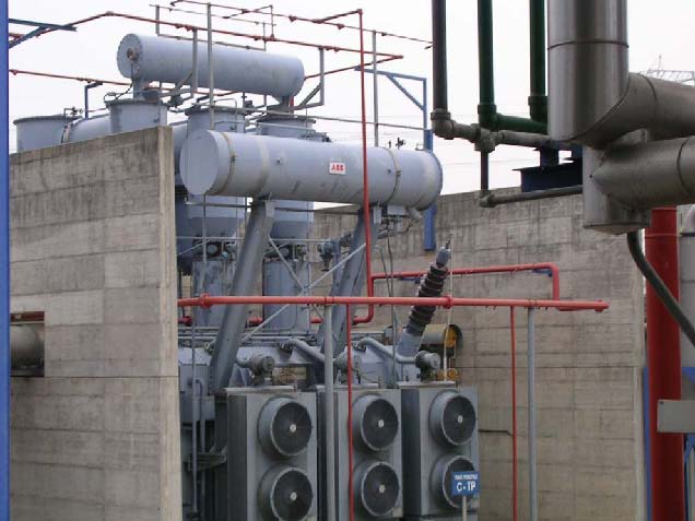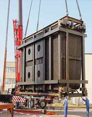 From each other the independently working condensing turbines propel in each case a generator. The tension at the clamps of each generator amounts to 10 or 20 kV. The produced energy is fed over a high voltage switching station with the appropriate disconnecting switches and an automatic idle current compensation into a transformer. The tension at the delivery point amounts to depending individual requirements. |